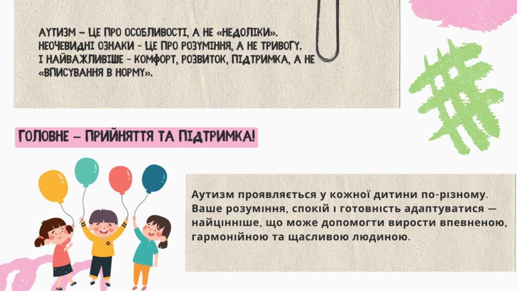 Аутизм це не хвороба, а нейрорізноманіття – інший спосіб сприйняття світу, інший спосіб обробки інформації, сенсорики та соціальної взаємодії.